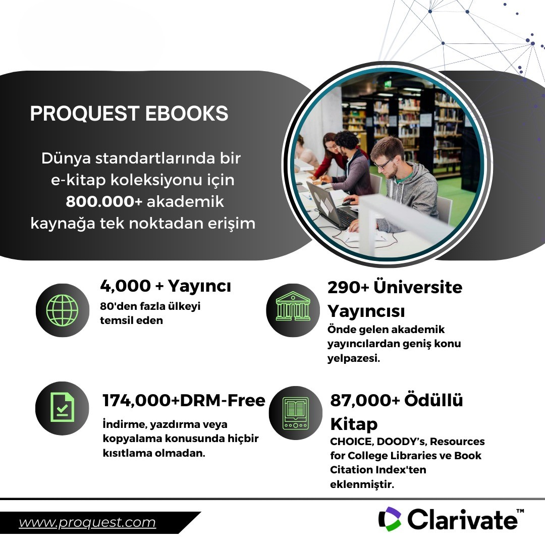 - Çeşitli bilim alanlarında 800.000 den fazla elektronik kitaba erişim olanağı sağlar.